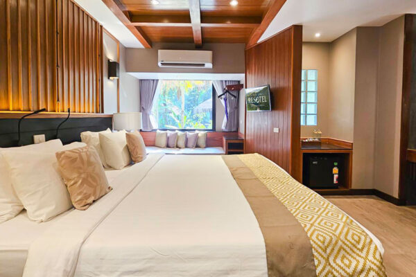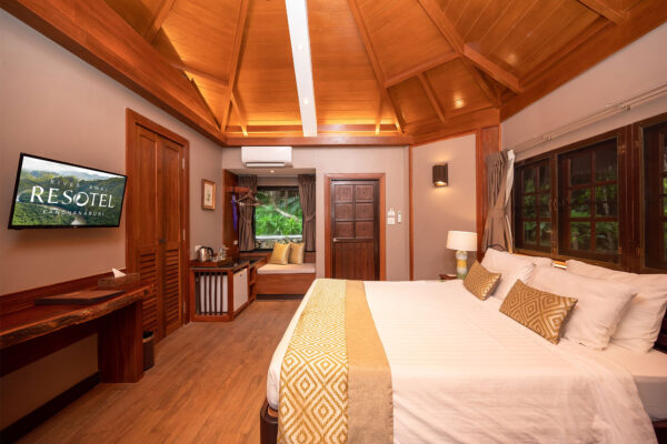 River Kwai Resotel botanical & riverside resort is a serene hideaway surrounded by verdant greenery, lofty mountains and stunning cliffs nestled on the bank of the world’s historic River Kwai Noi, . The rooms sit on stunning contour landscape overlooking limestone mountains and tropical forest by the river.