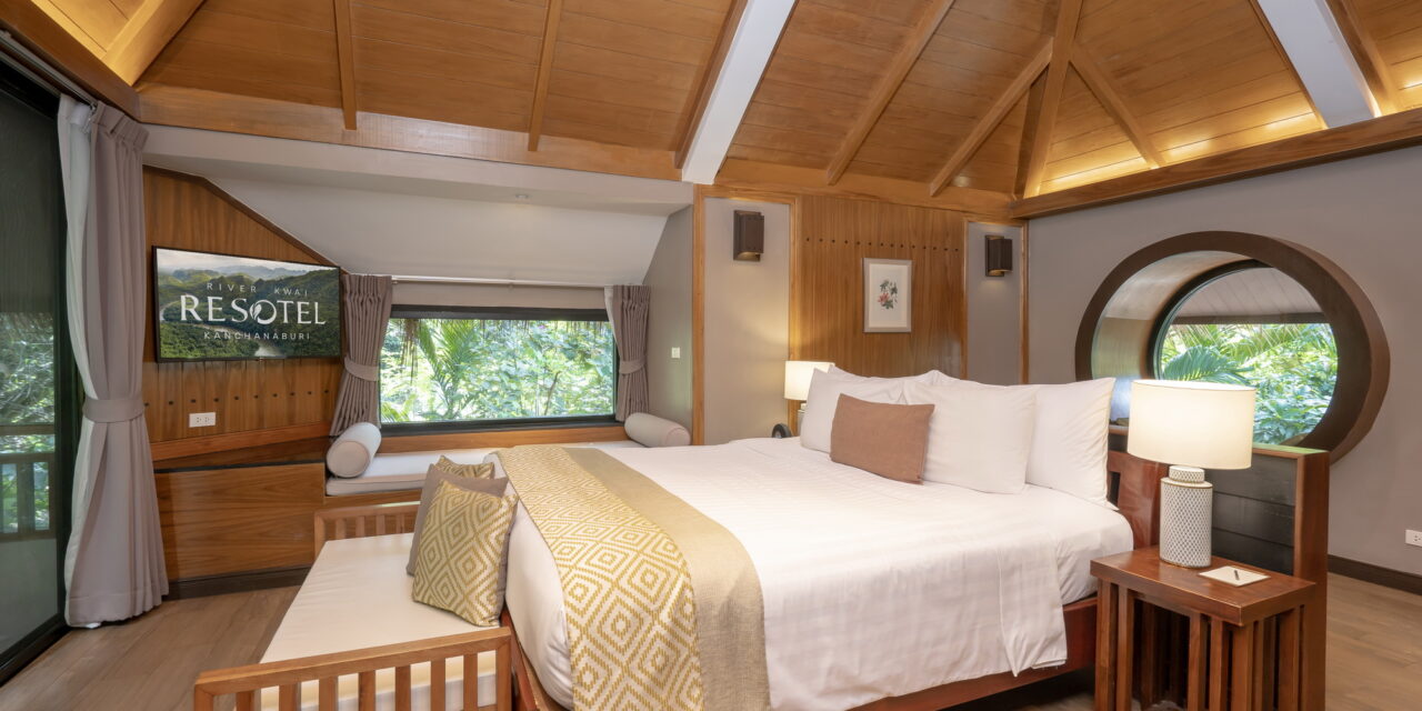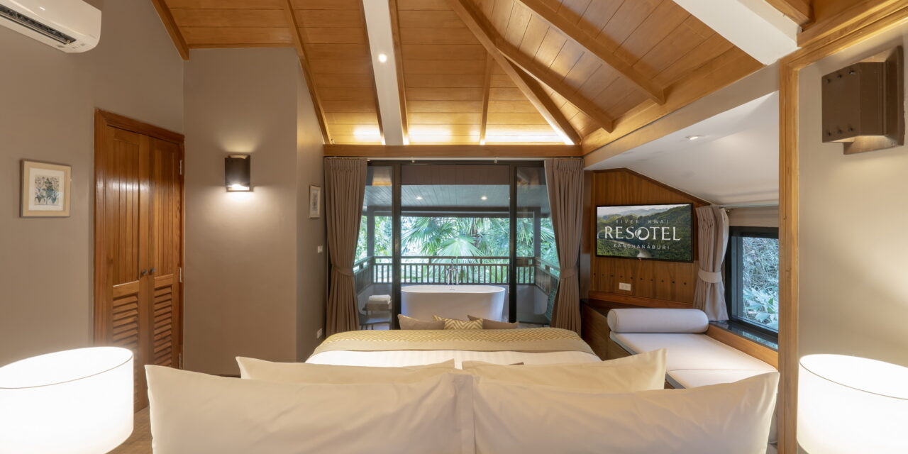 Riverview Grand Deluxe is a brand new room located higher up on the 2nd storey offering top panoramic view of the historic Kwai Noi river. The accommodation features an outdoor bathtub on the balcony where you can enjoy the scenery while listening to the sounds of nature.