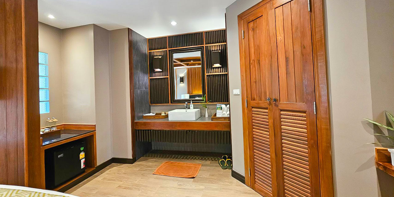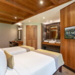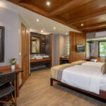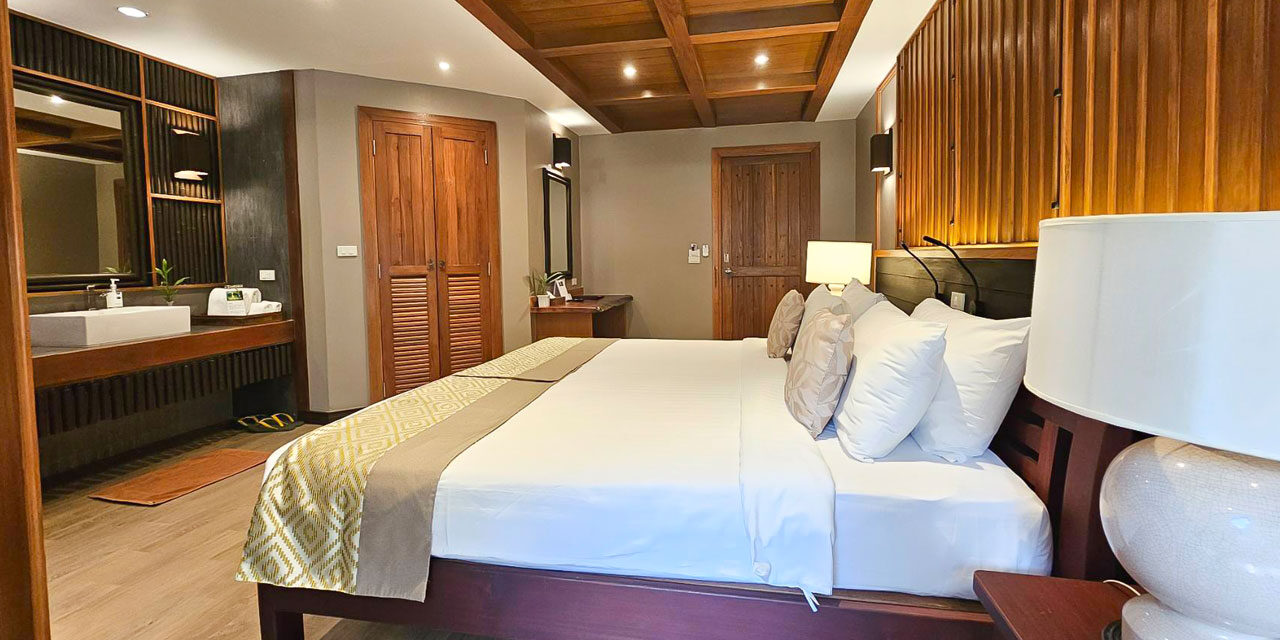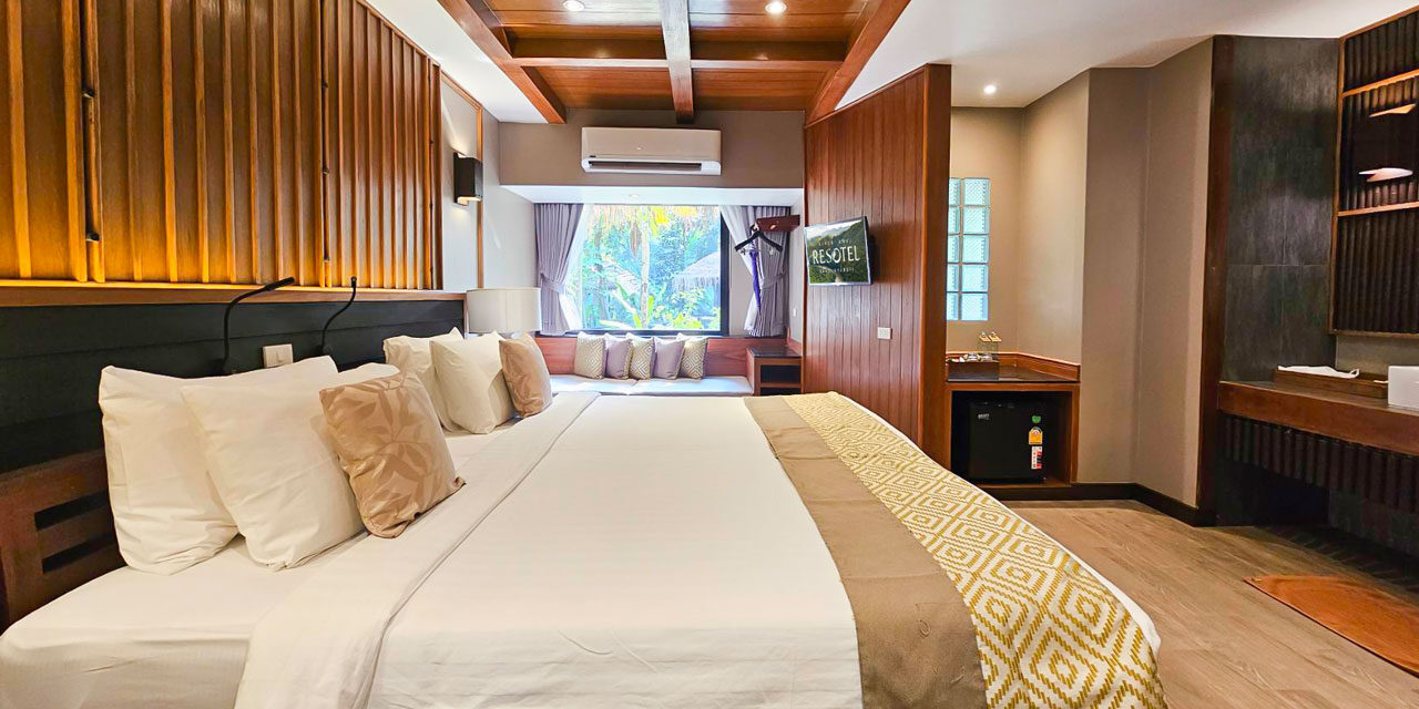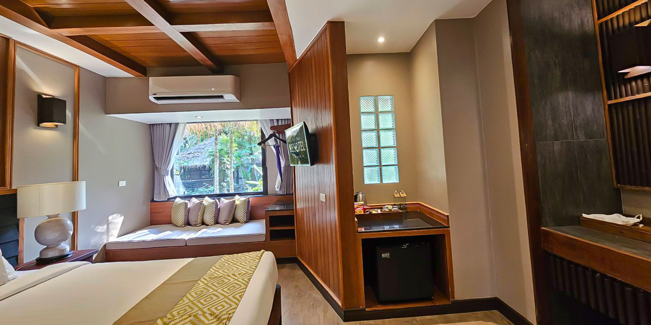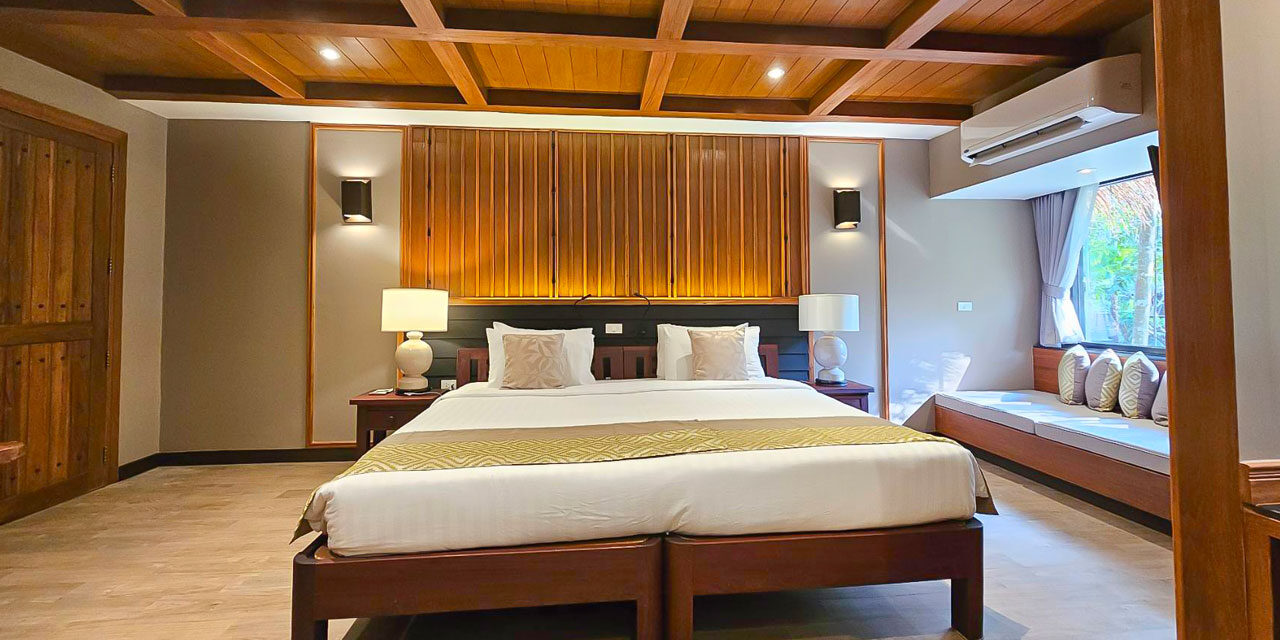 สัมผัสประสบการณ์การพักผ่อนสุดพิเศษสำหรับครอบครัว 4 คน ในห้องดีลักซ์แฟมิลี่ควอด ของเราที่ริเวอร์แควรีโซเทล ตั้งอยู่บนชั้นสองของชาเลต์สองชั้นที่น่ารัก ห้องกว้างขวางนี้เหมาะสำหรับครอบครัวที่ต้องการความสบายและความเป็นส่วนตัวในระหว่างการเข้าพัก ออกแบบมาอย่างพิถีพิถันเพื่อรองรับครอบครัว 4 คน มอบความสะดวกสบายที่ลงตัว ปล่อยตัวลงบนเตียงคิงไซส์ (6 ฟุต) อันแสนนุ่ม และเตียงขนาด 3.5 ฟุต ในขณะที่สมาชิกคนที่ 4 สามารถนอนบนเดย์เบดแสนสบายยืดแข้งยืดขาได้อย่างเต็มที่